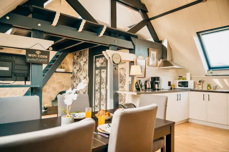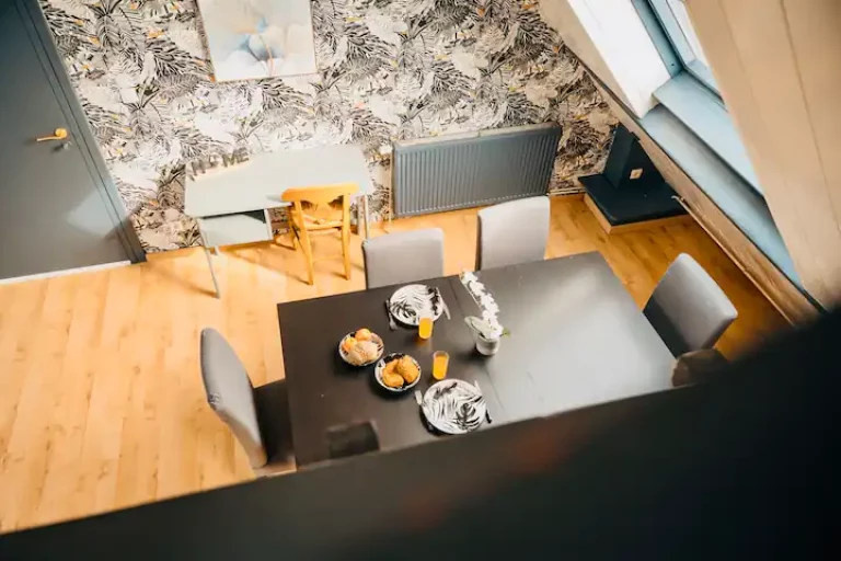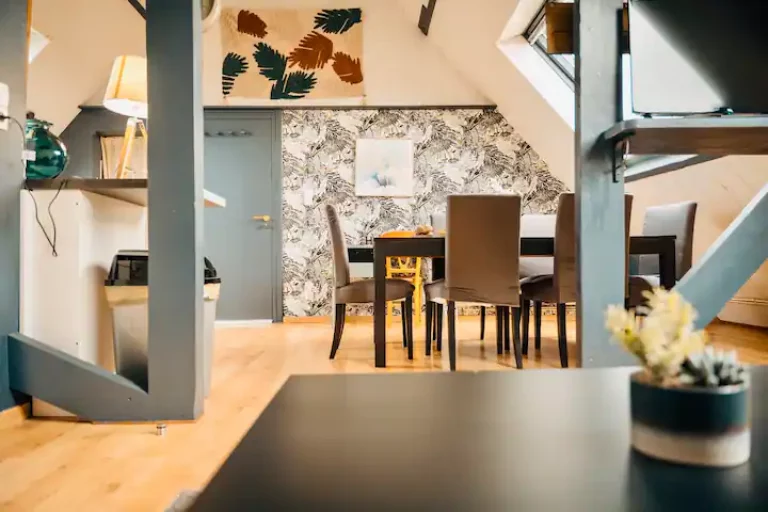 Notre résidence est composée de 5 suites, la suite que vous avez sélectionnée est la suite LEONARD faite d’une déco moderne pour vous faire passer un agréable séjour. La suite Léonard se situe au troixième étage de la résidence, accessible sans ascenseur.