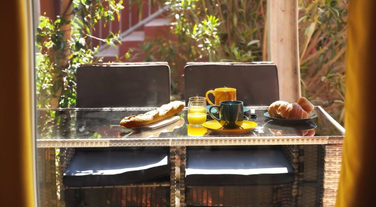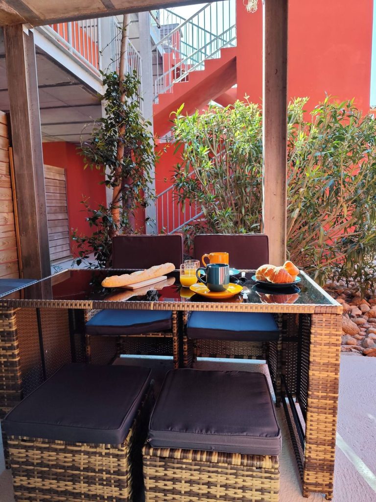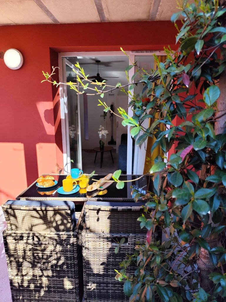 TERRASSE PRIVÉE aménagée pour des repas en plein air.
