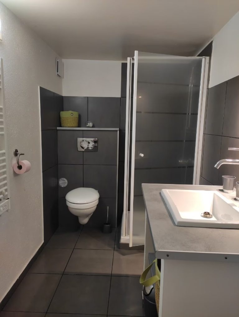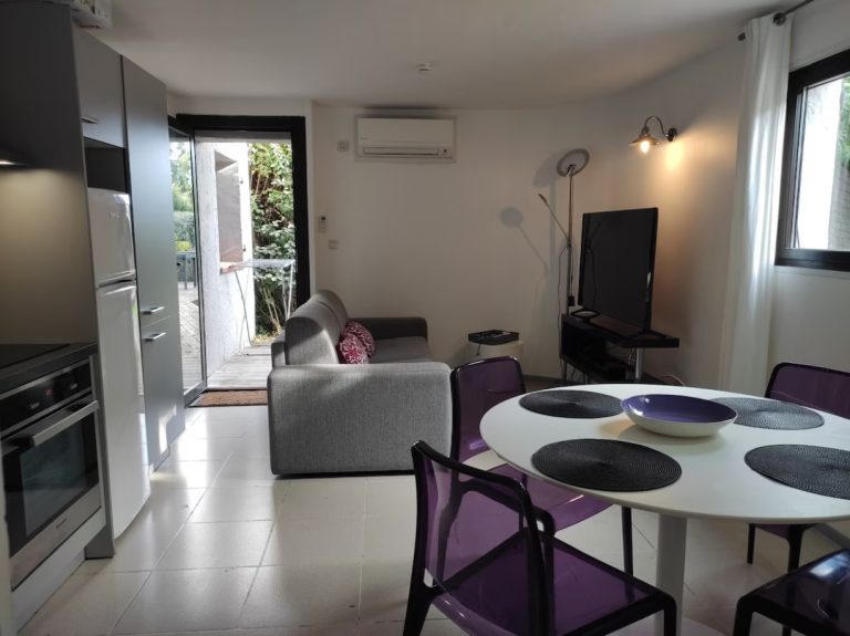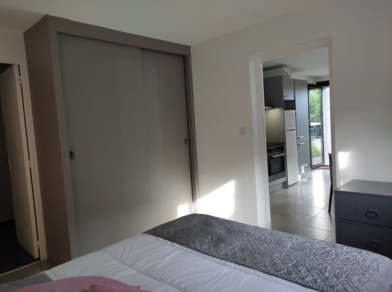 Ce T2 spacieux, confortable et bien agencé, se trouve en rez-de-jardin d’une grande villa partagée.