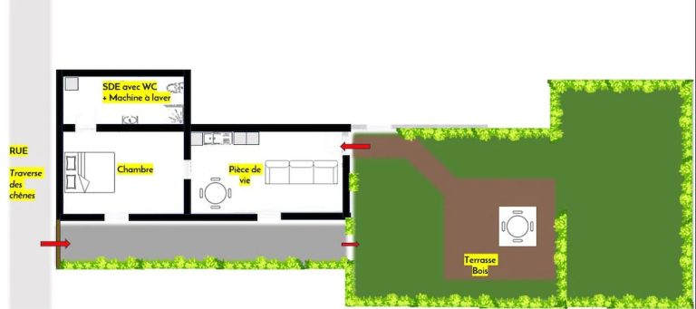* 1 jardin avec espace repas pour 2 à 4 personnes