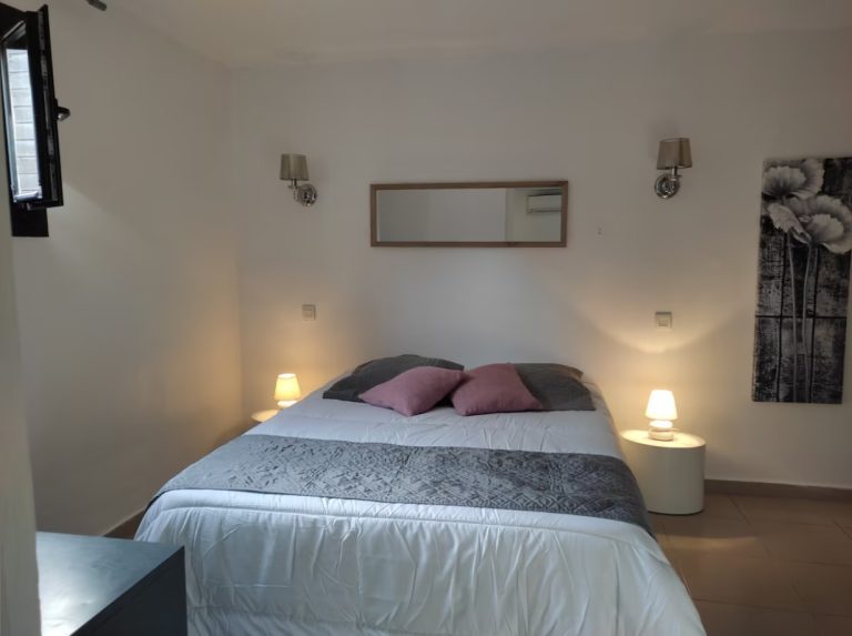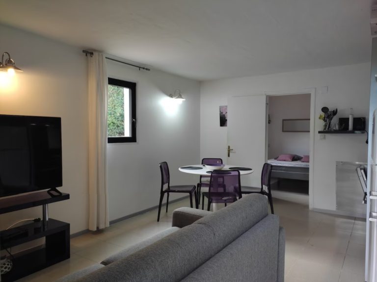 Entièrement climatisé, il comprend une pièce de vie avec cuisine et coin TV (avec canapé-lit), une chambre double, une salle de douche, et un jardin avec espace repas pour 2 à 4 personnes.