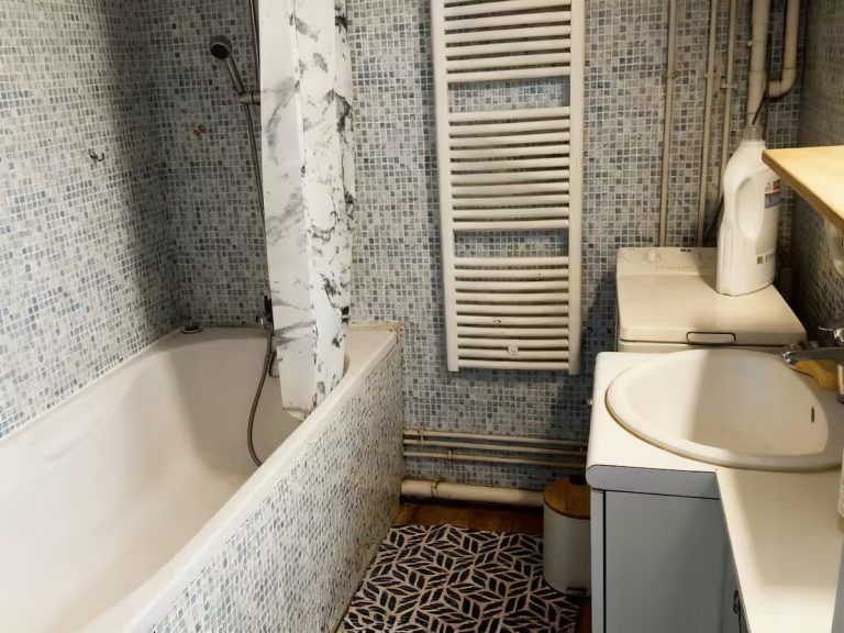 Appartement de 55 M2 avec une grande chambre avec dressing, salle de bain avec baignoire et lave linge, cuisine entièrement équipée ( four, four à micro ondes, cafetière Senseo à dosettes papier).