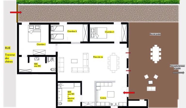 Ce T4 spacieux, confortable et bien agencé, est situé au rez-de-chaussée d’une grande villa. Il dispose d’une entrée privée, de trois chambres et de deux grandes salles de bain avec WC.
